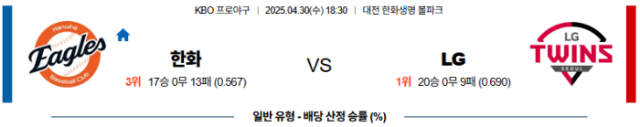 전날 심우준의 뜬금포가 승부를 가른것처럼 이번 경기 역시 의외의 포인트에서 승부가 날 가능성이 높다. 류현진과 치리노스 모두 호투를 기대할수 있는 투수들. 그러나 LG는 최근 강속구 투수 상대로 타격이 상당히 좋지 않은 편이고 이는 후반에 약점으로 드러날수 있다. 최근 LG가 후반에 약한게 결국 승부를 가를 것이다. 후반에 상대적으로 강한 한화가 신승을 가져갈 것이다.