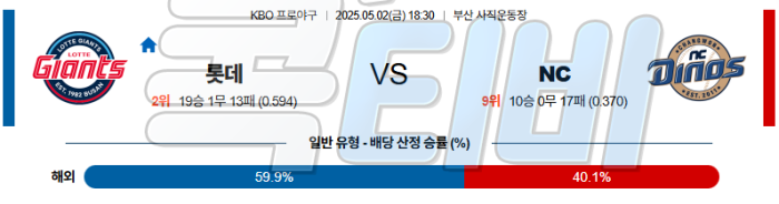 나균안은 기대라는걸 걸기엔 많이 부족한 투수다. 이번 경기는 그야말로 버티기의 투구를 보여줄듯. 최성영은 저격 선발임이 확실하지만 지금의 롯데 상대로 저격이 통할지는 미지수. 직전 롯데 상대의 호투는 당시 선발인 김태경이 최성영과 너무 스타일이 다른 투수라 가능했던 것이고 선발 최성영은 신뢰가 어렵다. 선발에서 앞선 롯데가 승리를 가져갈 것이다.