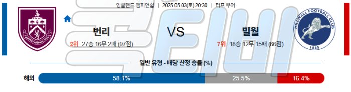 ✅ 번리는 높은 점유율과 빠른 박스 침투로 밀월 수비를 무너뜨릴 가능성이 큼!