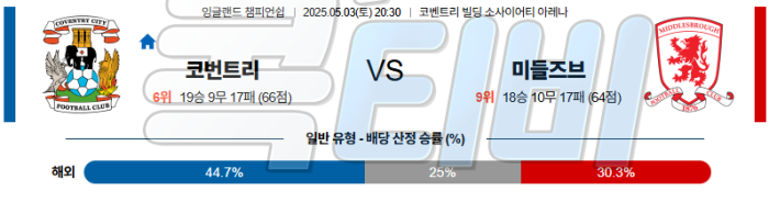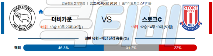 Soccer 잉글랜드 챔피언쉽 05월03일 분석