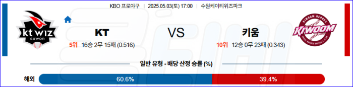 전날 키움은 잠수함 고영표 상대로 좋은 타격감을 보여주었다. 그러나 금년의 오원석은 좌타자 킬러고 전날 활약한 키움의 좌타자들은 힘을 쓰지 못할듯. 최근 하영민의 투구는 주목의 가치가 있지만 유독 작년 KT만 만나면 고전하는 타입이었고 하영민은 3경기 연속 호투를 보기가 매우 힘든 투수다. 선발에서 앞선 KT가 승리를 가져갈 것이다.