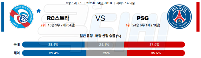 스트라스부르는 홈에서 수비 전환을 중심으로 버티는 전술을 택하지만, 파리의 전술적 완성도와 침투 전개를 막기엔 구조적으로 불리하다.
